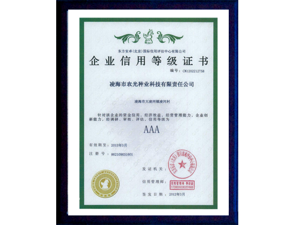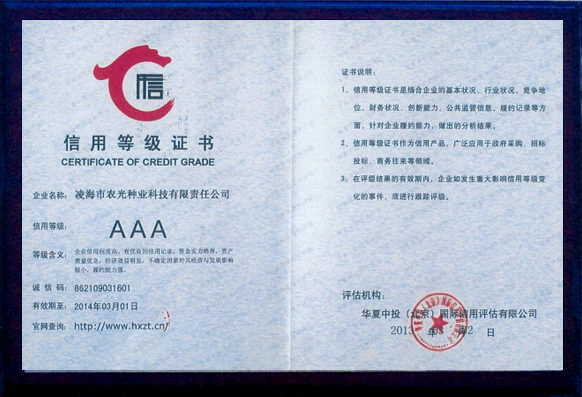 | 凌海市農(nóng)光種業(yè)科技有限責(zé)任公司是由遼寧省種子管理局和凌海市人民政府批準(zhǔn),集科研、生產(chǎn)、試驗示范、經(jīng)營為一體的種子企業(yè)。 公司擁有種子繁育基地3萬畝,年產(chǎn)種子1200萬公斤左右。自成立以來在農(nóng)業(yè)部及遼寧省歷次花期檢驗中,所生產(chǎn)的種子質(zhì)量合格,擁有良好的儲備、晾曬和機械加工設(shè)備,為了提高種子質(zhì)量,2015年新購置種子脫粒機、清選機、烘干機以及電腦包裝機等整套加工設(shè)備,擁有經(jīng)省技術(shù)監(jiān)督局認證的“標(biāo)準(zhǔn)化檢驗室”,投資20萬元購買人工氣候室、土壤測試儀、低溫低濕冷藏箱等各種檢驗設(shè)備。公司重視種子科研工作,現(xiàn)有科研育種實驗基地100畝,科研上以自主研發(fā)為主,同時與多家科研單位合作育種,每年繁、育、測交材料2000多份,現(xiàn)以推出五個組合參加錦州區(qū)域試種,其中“農(nóng)光3號、農(nóng)光4號”在錦州地區(qū)試驗中產(chǎn)量居首位。2006年公司買斷的連玉16玉米品種已通過5個省市的審認定,具有適應(yīng)性廣、抗逆性強、產(chǎn)量高的特點,曾榮獲大連科技進步一等獎,深受廣大農(nóng)戶的歡迎。2008年公司新選育的農(nóng)光4000玉米品種在市種子管理站新品種大區(qū)試驗項目中。2012年公司買斷錦玉118品種權(quán),新品種的推廣與應(yīng)用為公司的發(fā)展提供了充足的動力...... |